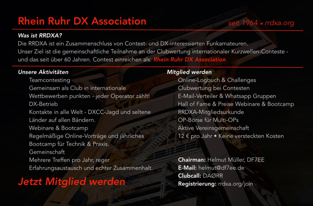 Mitglied werden – Become a member You want to join the RRDXA – please sent email with your call and contact data to DF7EE! Bitte DF7EE für Beitrittsanfrage kontaktieren! Please contact DF7EE to become member.