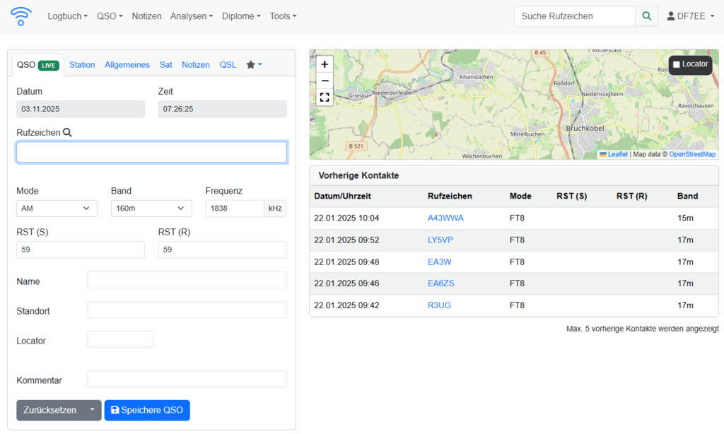 - Logging (in Echtzeit und nachträglich) von “Alltags-QSOs”